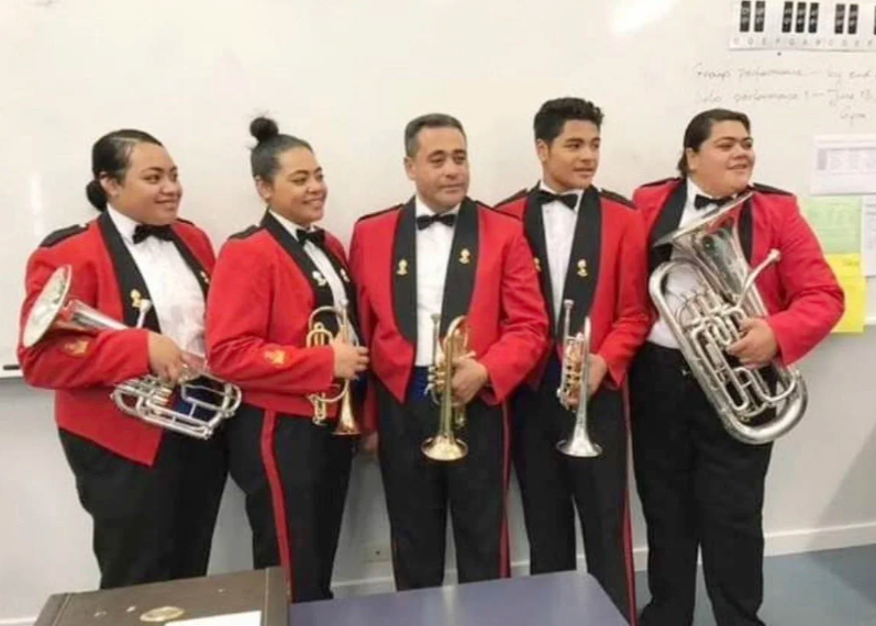 Playing in the Royal Regiment of the NZ Artillery, Anne Filimoehala (left), Caroline (sister), Fakasi’i’eiki, (father) William (brother), Linda (sister). Photo/Supplied