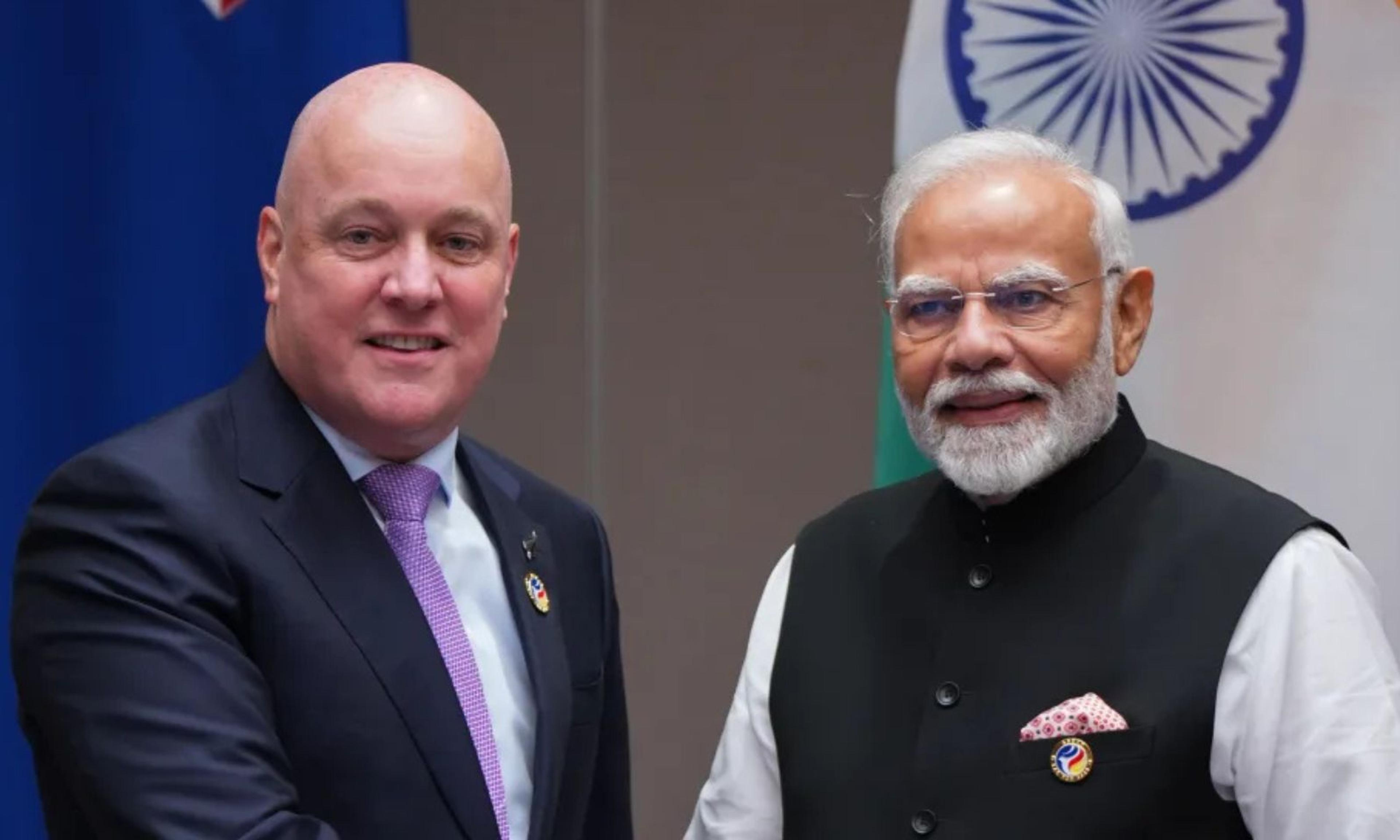 New Zealand's Prime Minister Christopher Luxon says the new free trade agreement with India is a landmark step for exporters and long-term economic growth. Photo/PMN News/file