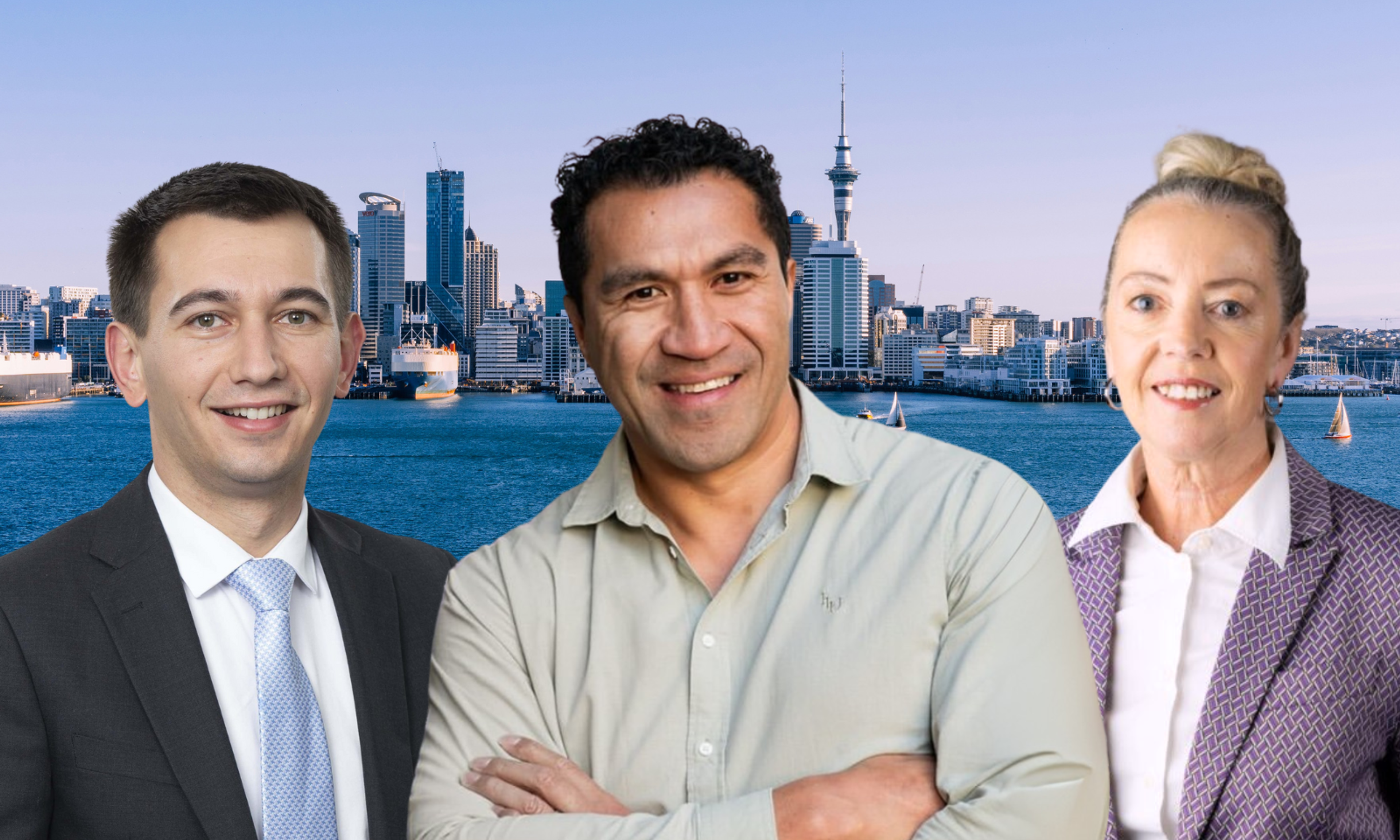 From left: Auckland Minister Simeon Brown, Auckland Business Chamber of Commerce Director Mils Muliaina and Auckland Council's Economic Development Office General Manager speak about the new report.