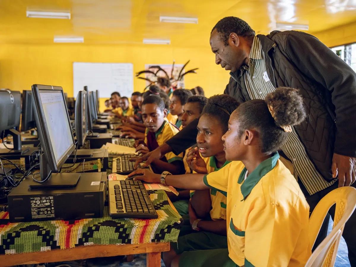 USP students say clear AI guidelines are needed to ensure young people like these from PNG build skills rather than become dependent on automated tools. Photo/litehausinternational.org/pacific