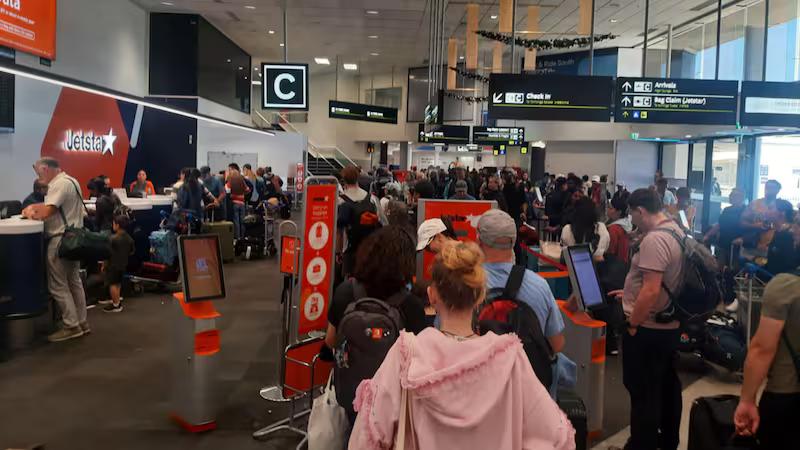 Travellers across New Zealand faced queues, cancelled flights and missed family events. Photo/RNZ/Calvin Samuel