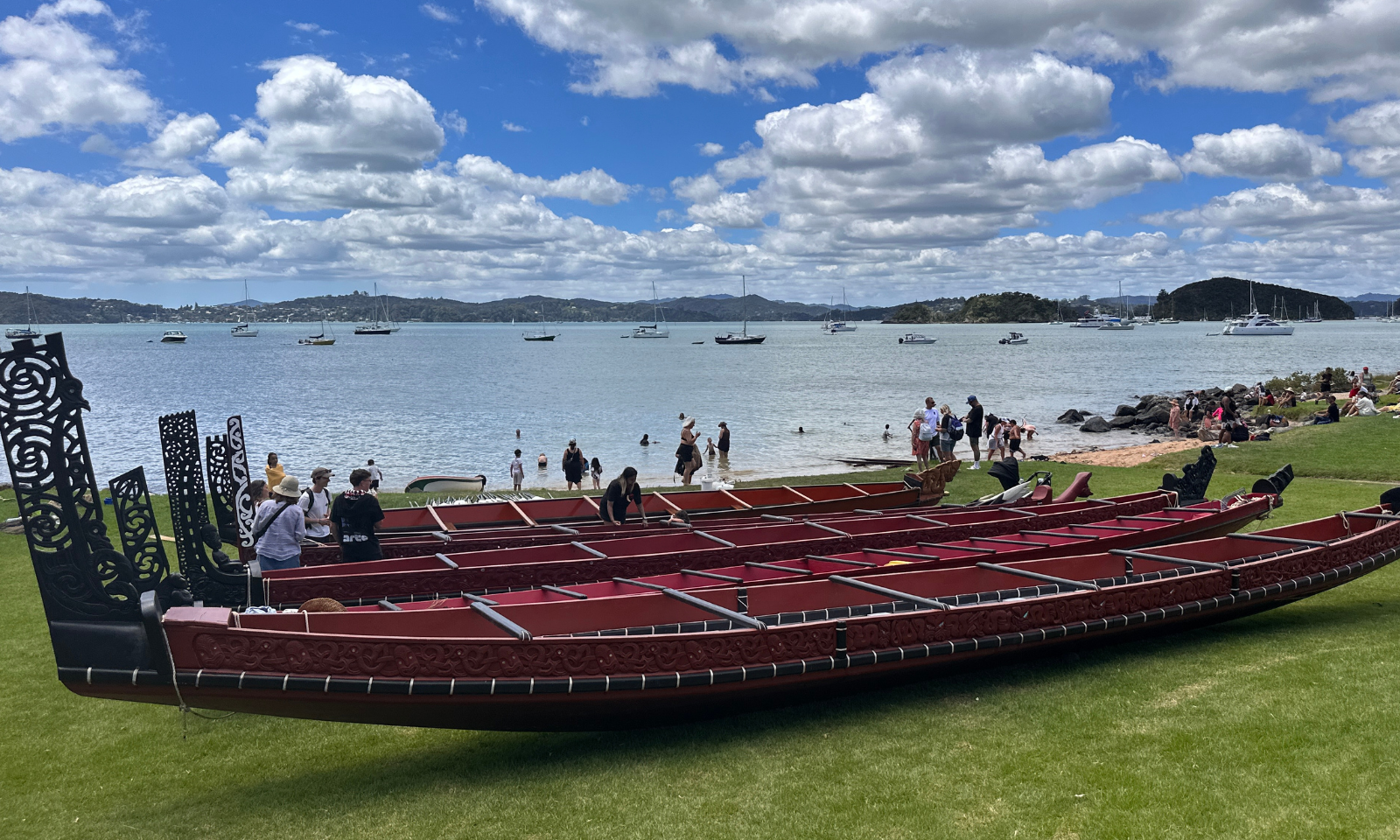 Cloudy skies gave way to blazing midsummer heat as thousands gathered at Waitangi on Friday, filling the Treaty Grounds with sound, colour, and movement.
