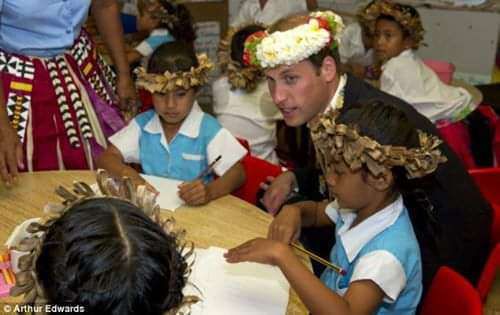 Selina Camillo, a Year 1 student in Tuvalu, pictured left next to Prince William. Photo/Arthur Edwards