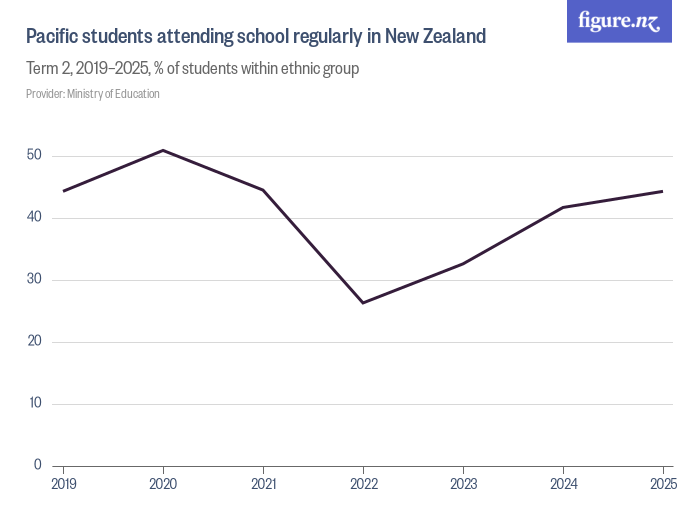 School attendance for Pacific students 2019-2025, including a drop after the pandemic. Image/Figure.nz