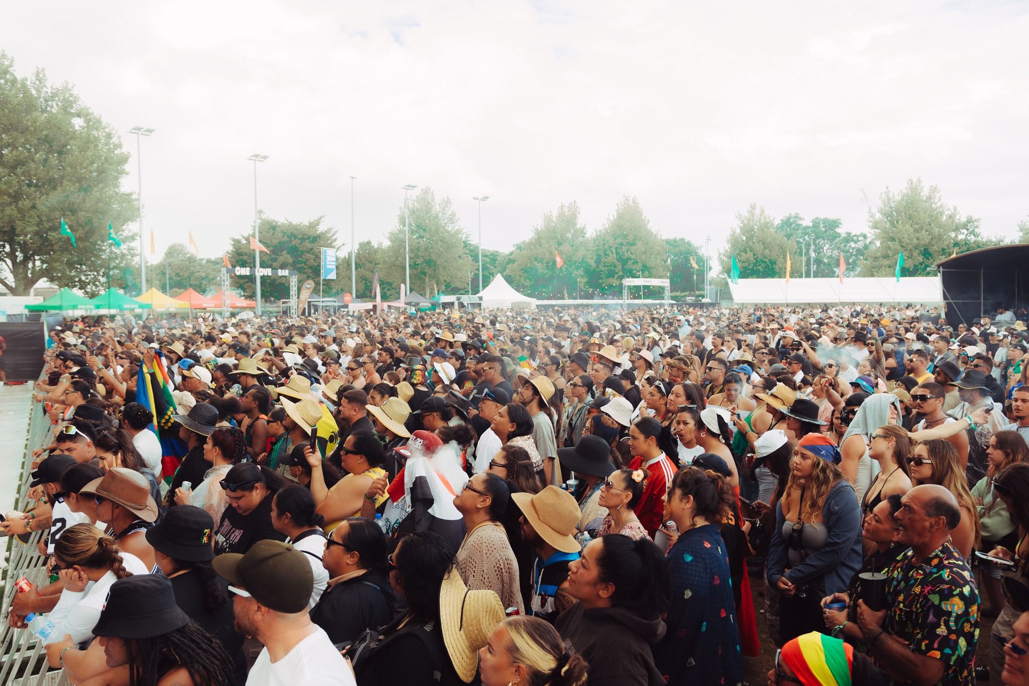 Festival-goers dancing and enjoying reggae vibes under the sun at One Love Festival in Tauranga.