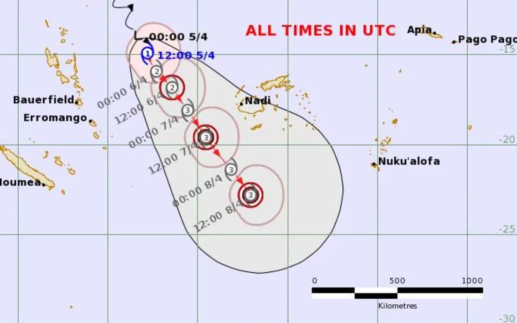Forecast track for Tropical Cyclone Vaianu Photo/Fiji Meteorological Service