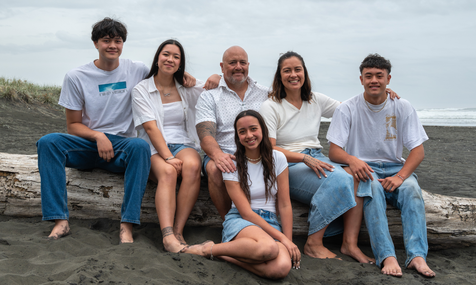 Laila Martin (second from right), with her husband Pete (centre) and their children: Eli, Raiha, Kaia and Isaac. Photo/Supplied