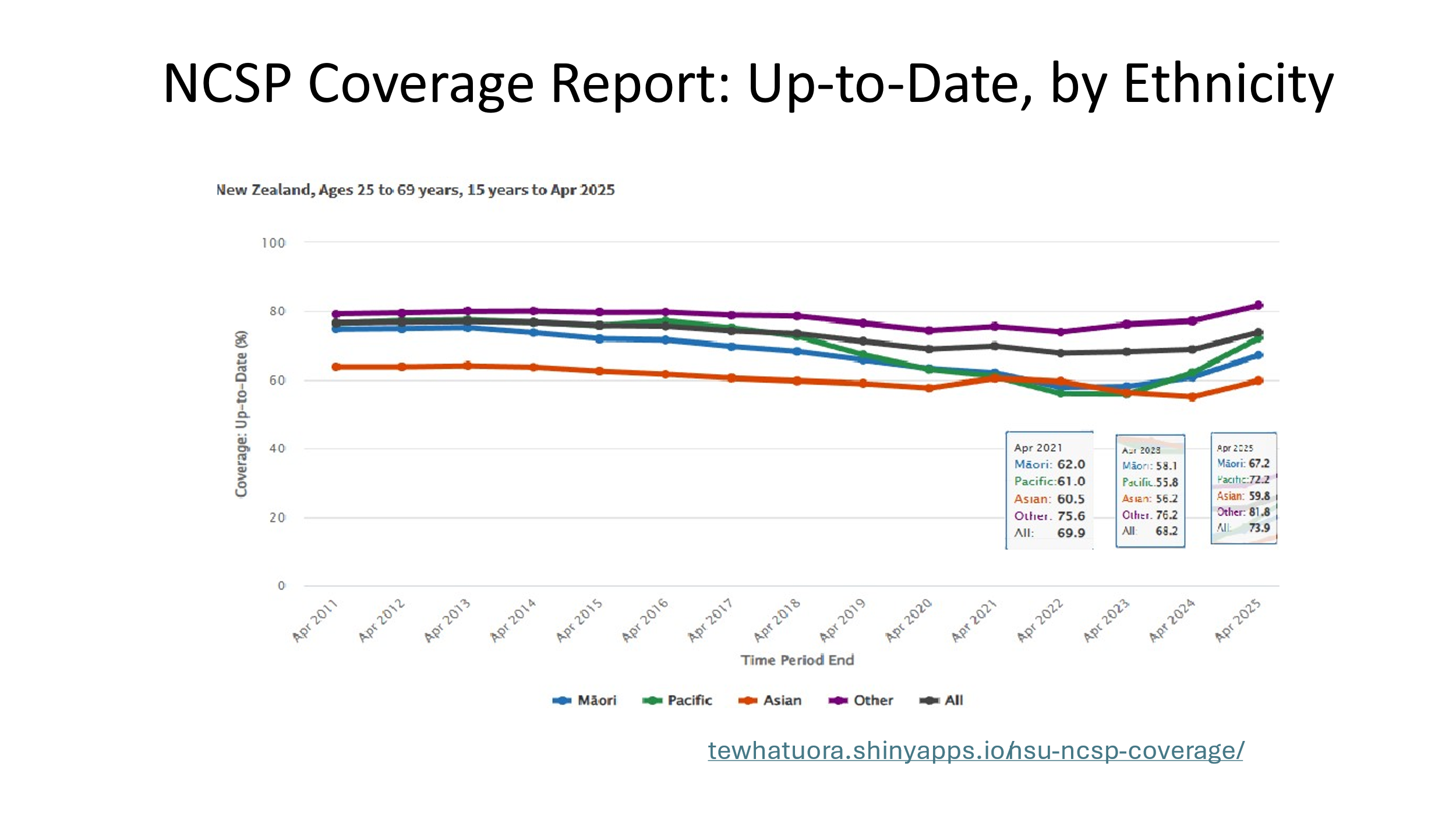 In areas like Otago and Southland, local health organisations report 61 per cent of Pacific participants are up to date with their screenings, indicating a positive trend.