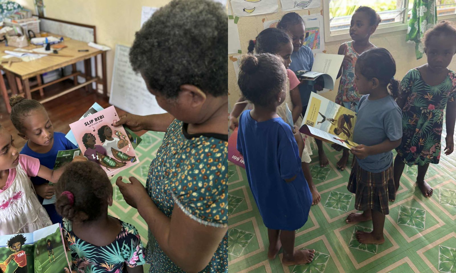 Earlier this month, children in MAPESA Community School in Honiara received story books handed over to them by Florence Curr, wife of NZ's High Commissioner to the Solomon Islands. Photo/Facebook/M&P LearningHub