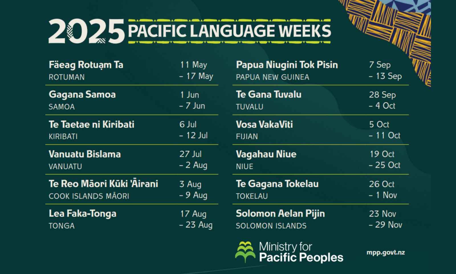 The New Zealand Pacific Language Weeks series started in 2010, with Rotuma added in 2020. This year also marks the debut of Bislama, the national language of Vanuatu.