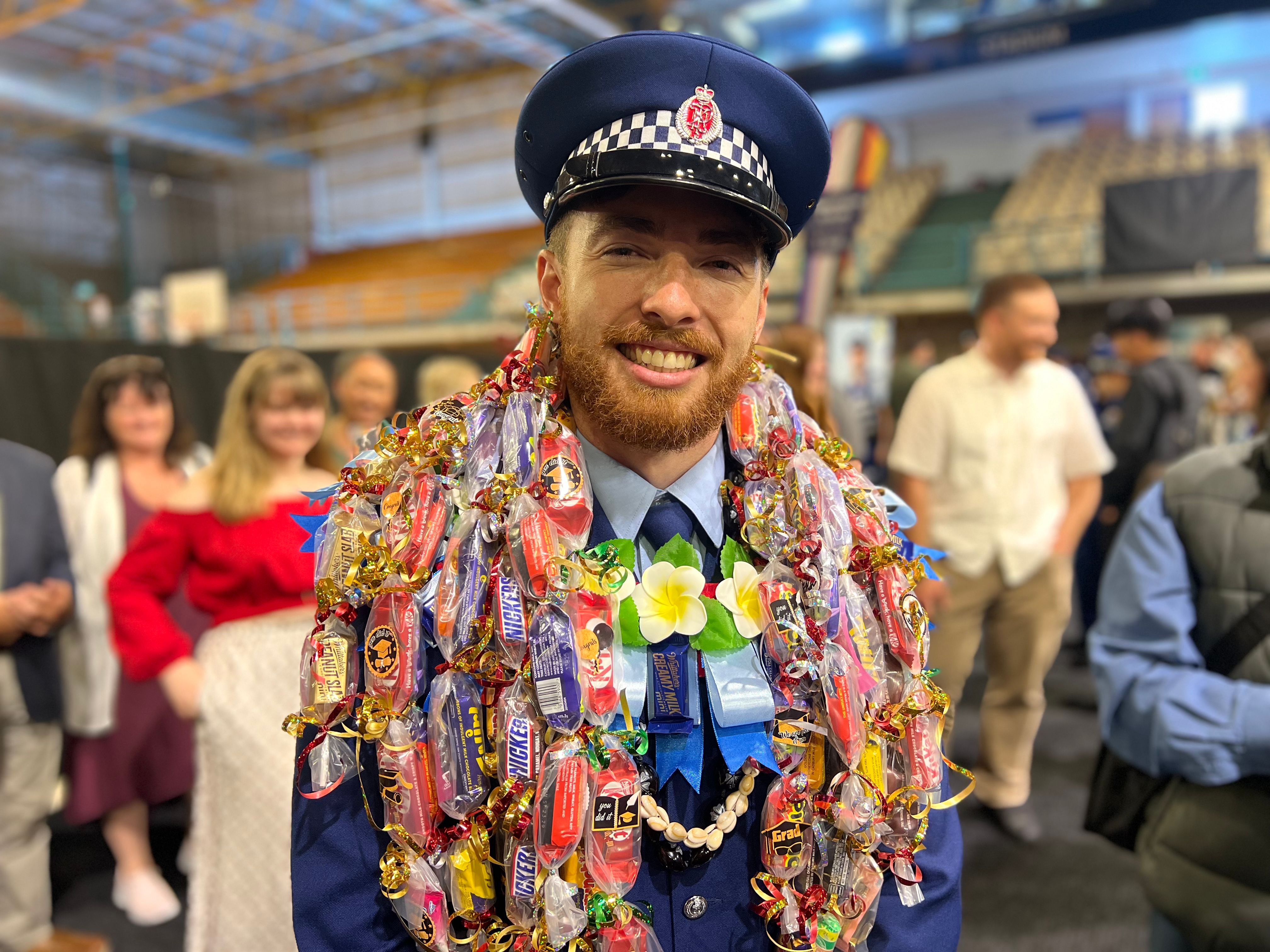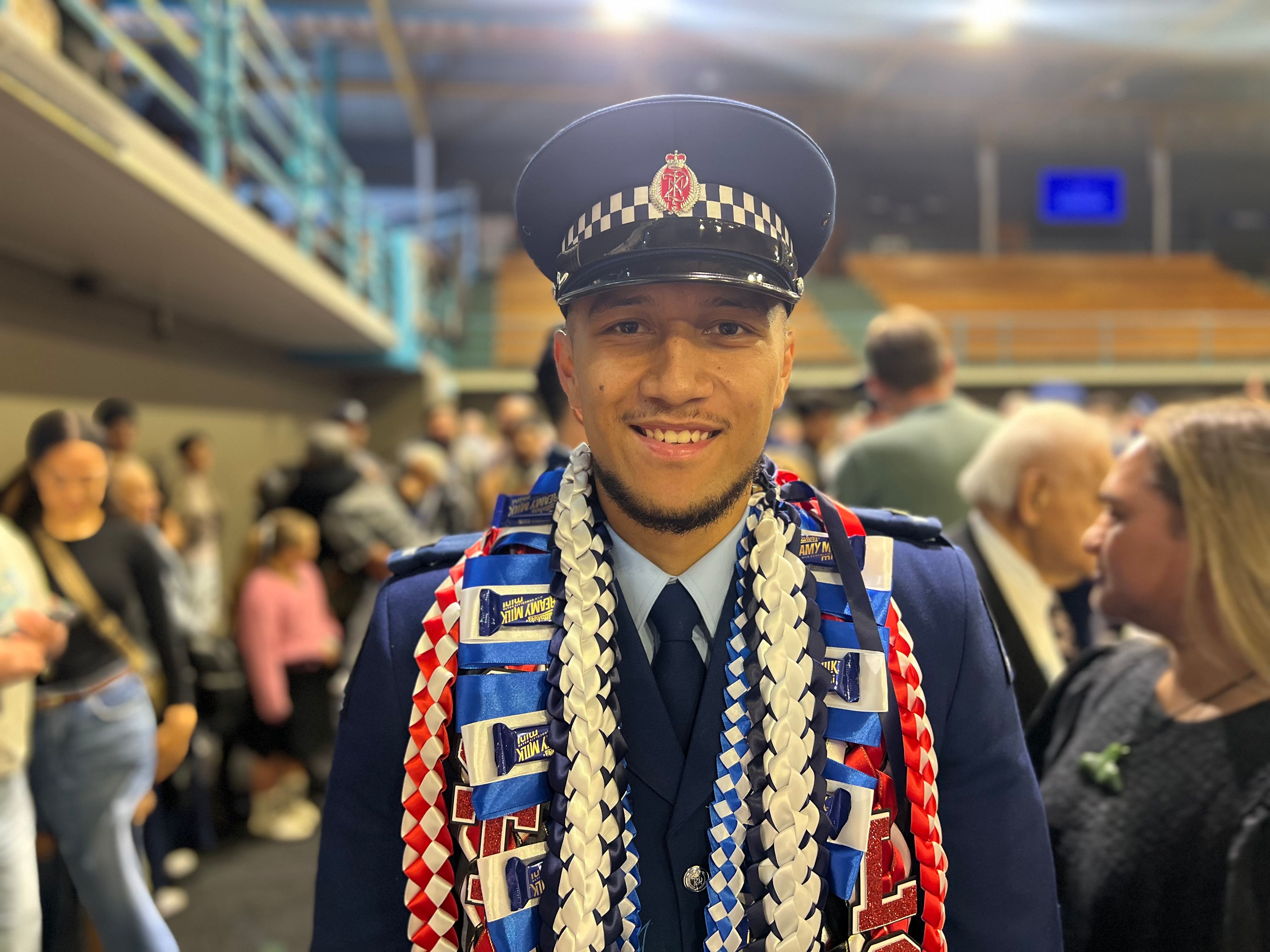 Constable Bjorn Haycock, 25, who is of Niuean and Sāmoan descent, says becoming a police officer has been his dream since he was a teenager, and it was important to celebrate with family.