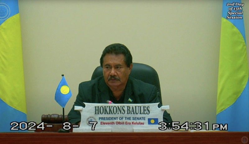 Palau Senate President Hokkons Baules says he learned about his son’s arrest in Fiji through media reports. Photo/Youtube screenshot of video by the Senate Palau National Congress