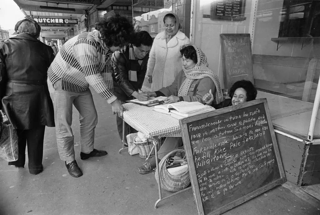 Namulau’ulu Tala Cleverley working to register Pacific People to vote in the election. Photo/NZ Archive: 22799028