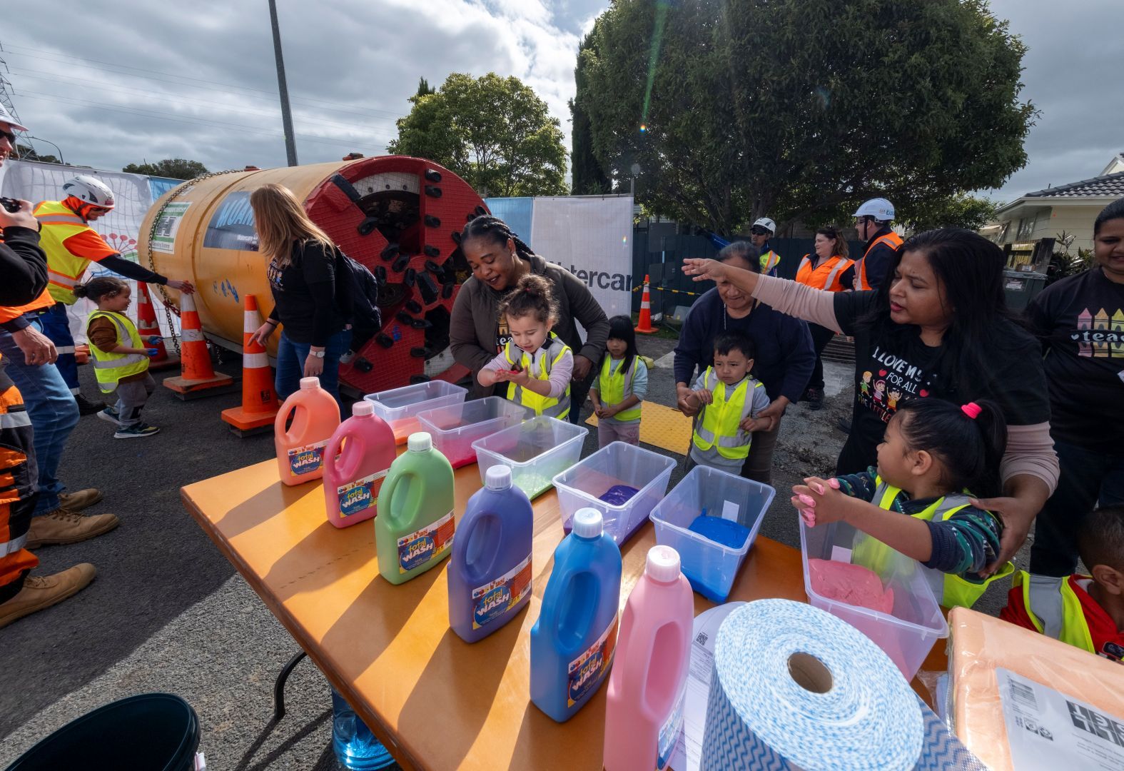 Around 30 local preschoolers left colourful handprints on Moana, the tunnel-boring machine that will dig a new wastewater tunnel in Māngere East as part of Watercare’s $64 million upgrade.