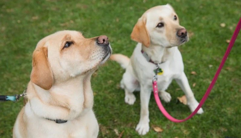 A dog on a leash in a public space. Residents say on-leash rules help improve safety in shared areas.