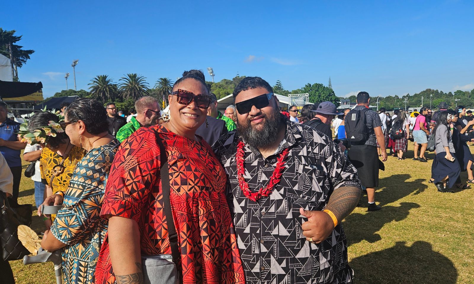 Nathan Lopa, director of the Te Kiwa Nui Festival, with Melvina Martin(left) at ASB Polyfest 2026. Photo/PMN News/Taelegalolo'u Mary Afemata