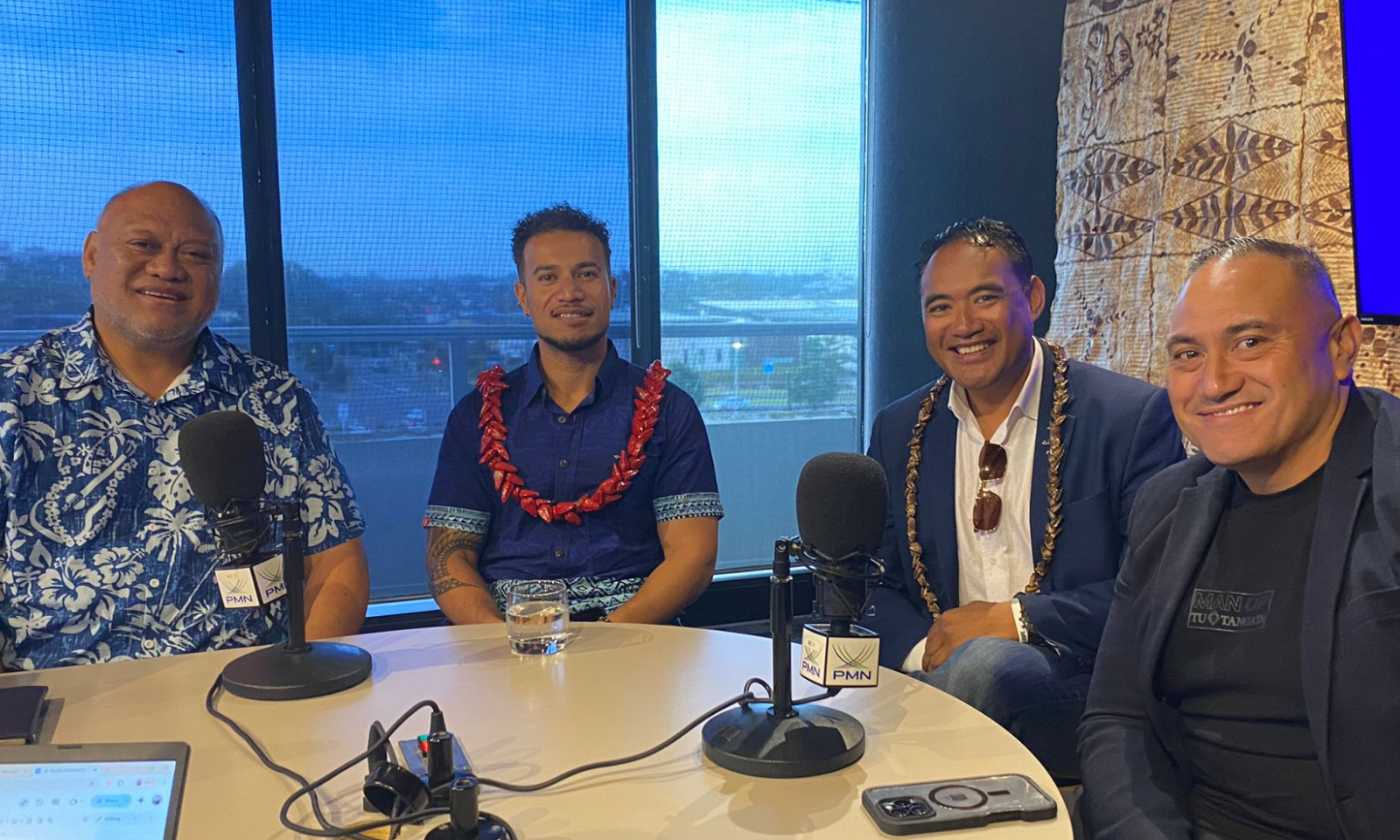 Four Pasifika candidates during a Pacific Mornings talanoa at Pacific Media Network. From left: Taitosaua Bill Peace, Vi Hausia, John Loau and Karl Mokaraka. Photo/PMN News/Taelegalolo'u Mary Afemata