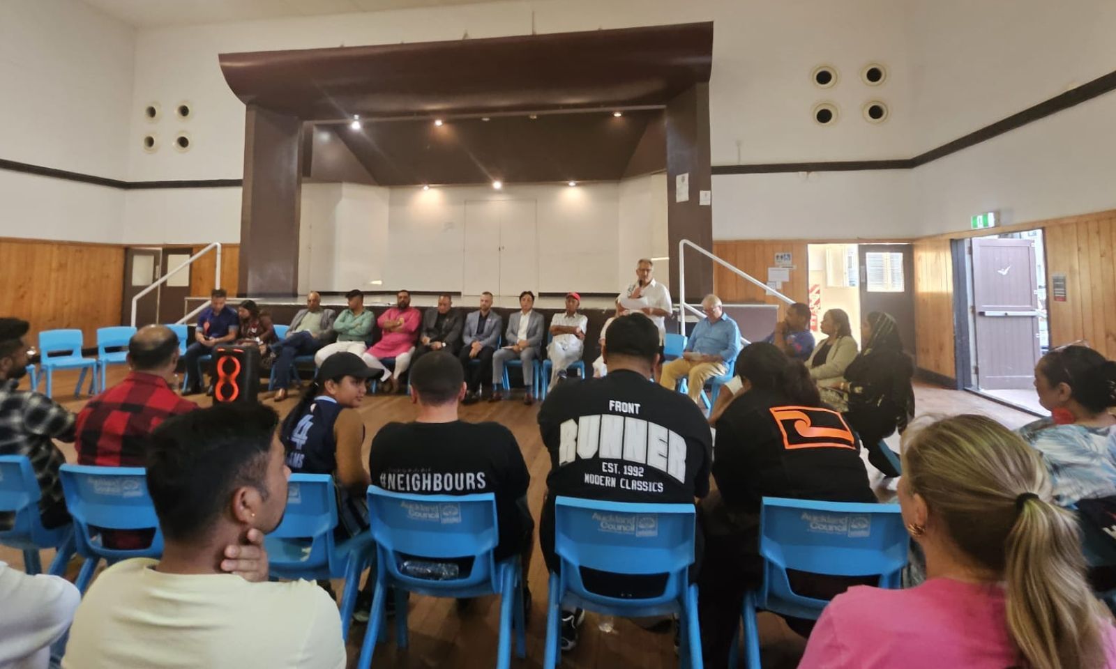 Candidates and their families gather at a community-led ‘meet the candidates’ forum at Papatoetoe Town Hall during the re-run election.