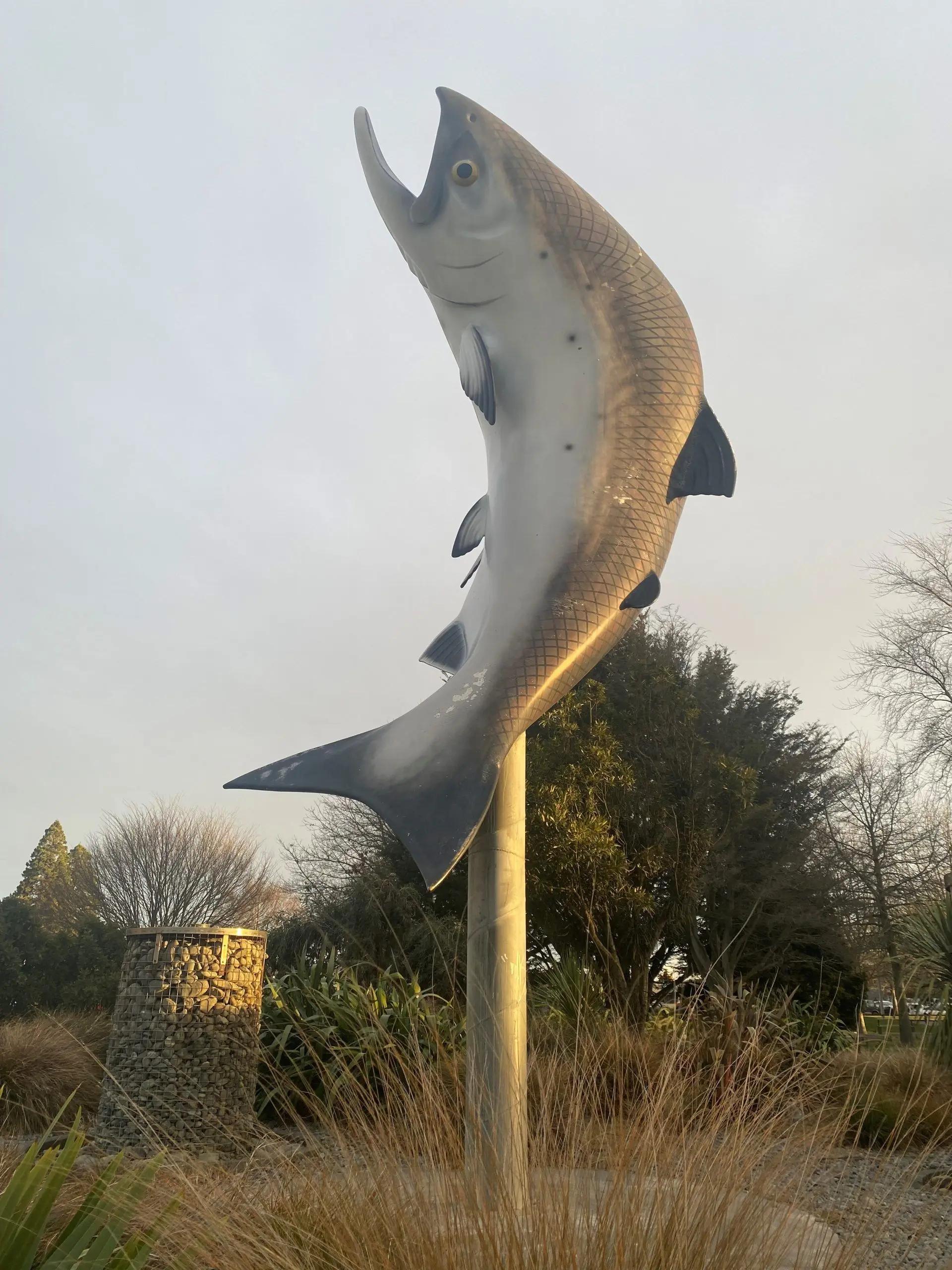 The giant Rakaia salmon statue is due to undergo a $300,000 refurbishment.