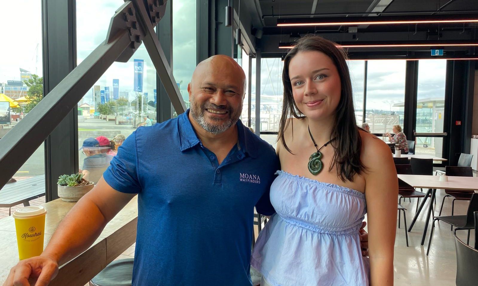 Tagaloa Sailing Project founder Sonny Natanielu with participant Jasmin Holden-Whiu, who is studying environmental science and Māori studies. Photo/PMN News/Taelegalolo'u Mary Afemata