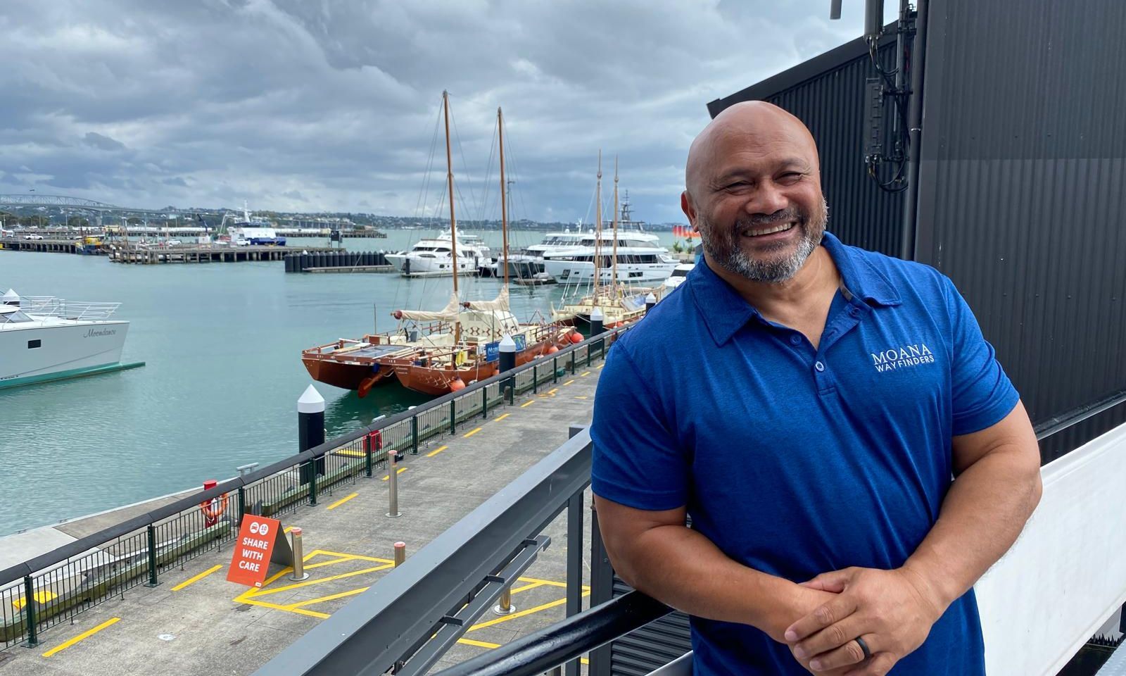 Tagaloa Sailing Project founder Sonny Natanielu at Auckland’s waterfront. The programme aims to reconnect Pacific communities with voyaging traditions while building water safety skills. Photo/PMN News/Taelegalolo'u Mary Afemata