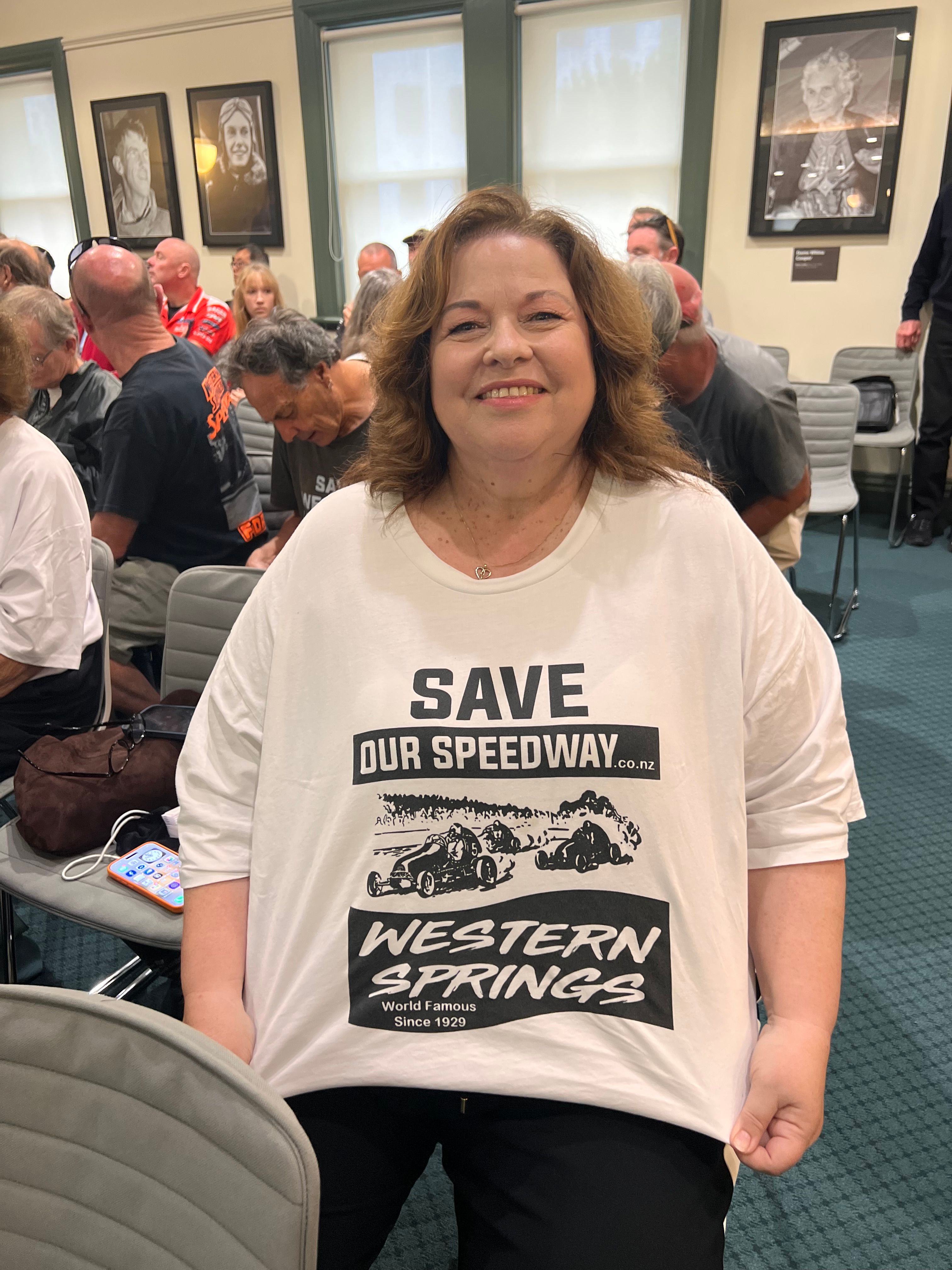Susie Davis at an Auckland Council meeting advocating for speedway at Western Springs. Photo/PMN News/Taelegalolo'u Mary Afemata
