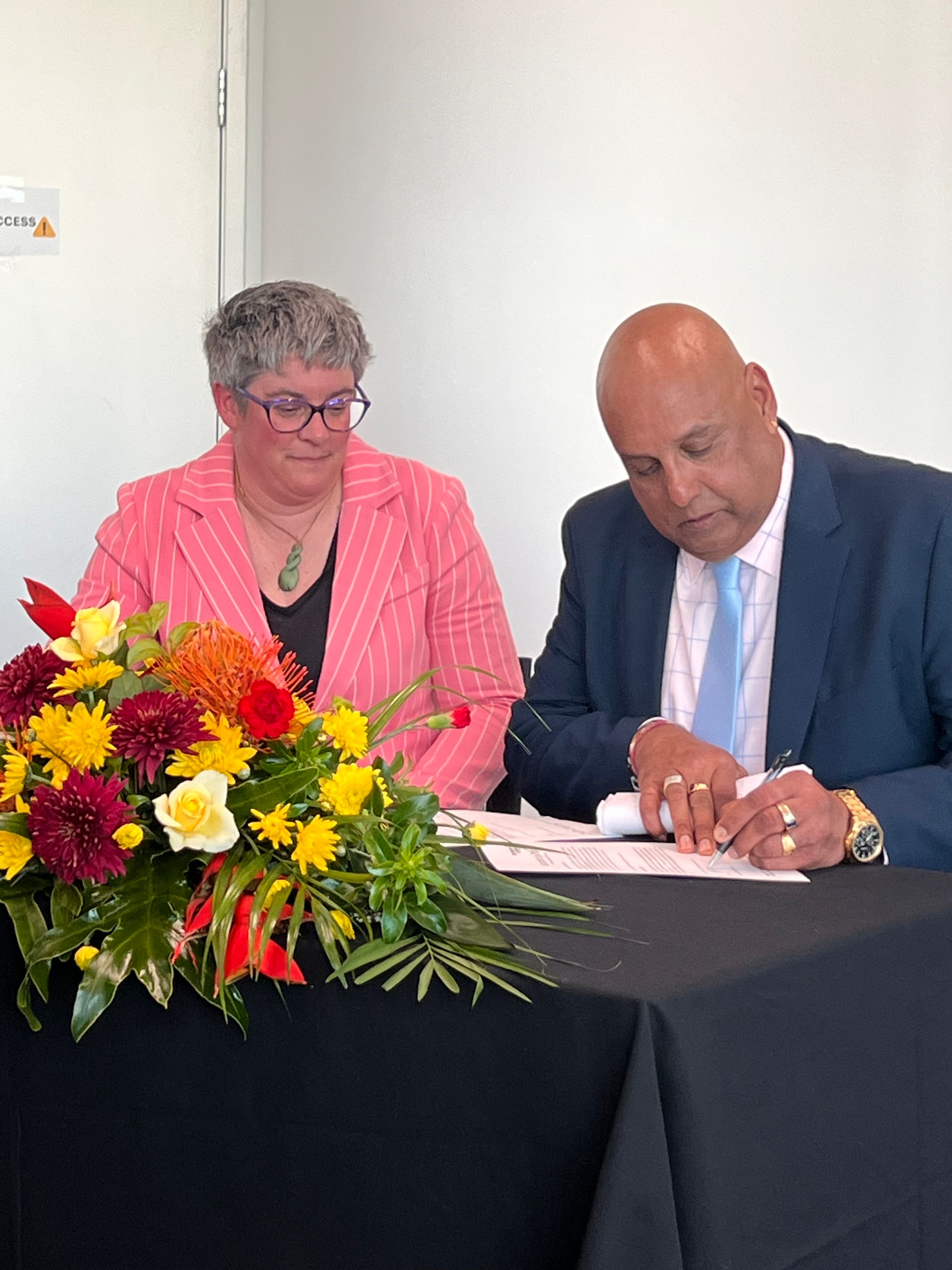 Chair Kushma Nair signs his declaration as chair of the Ōtara-Papatoetoe Local Board. Photo/PMN News/Mary Afemata.
