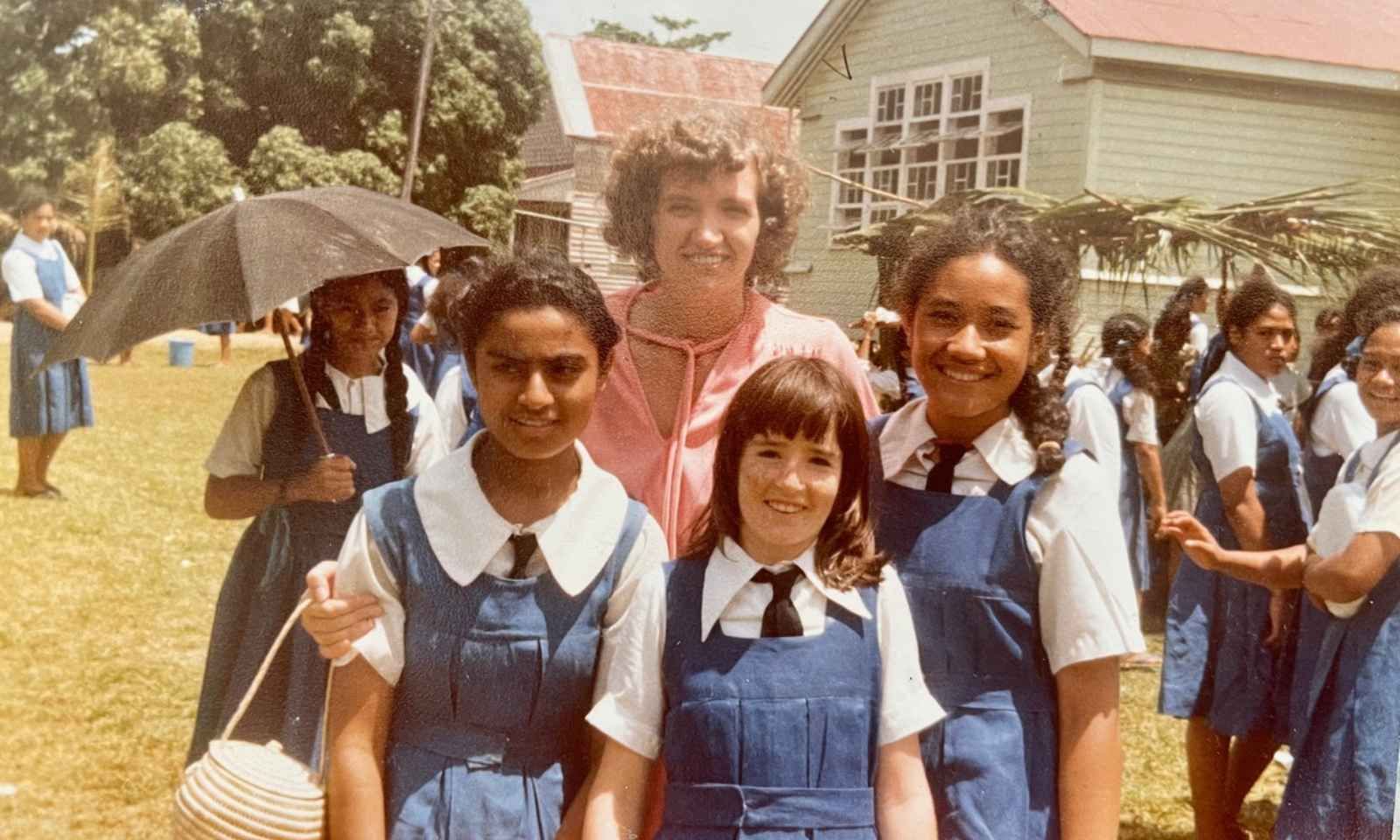 School life was also filled with music, dance, and celebration. “I made lots of money dancing at school functions, covered in coconut oil, flowers and cash, although it was probably mainly sympathy donations,” she joked.