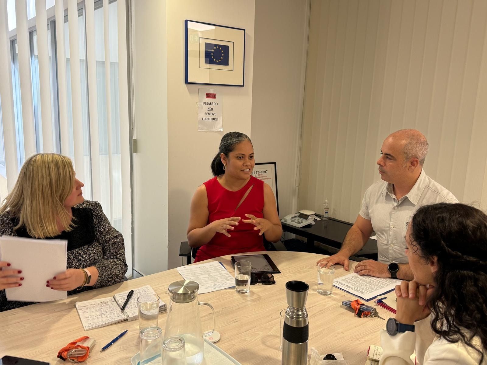 Fiji’s Director-General for Digital Government Transformation, Cybersecurity, and Communications, Tupou'tuah Baravilala, second from left, joined the EU Member States Ambassadors in June to discuss Fiji’s National Digital Strategy 2025-2030 as well as to explore opportunities for enhanced cooperation with Fiji on cybersecurity and digital issues. Photo/Facebook/European Union in the Pacific