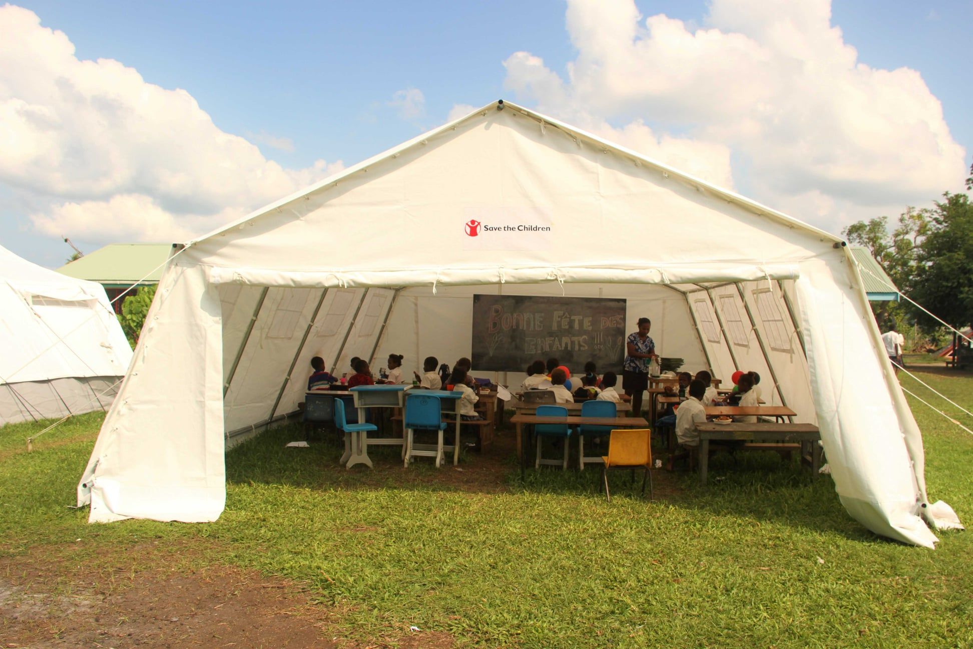 Children in Vanuatu attend school in makeshift tents after Cyclone Harold in 2020. Photo/Aucstralian High Commission, Vanuatu
