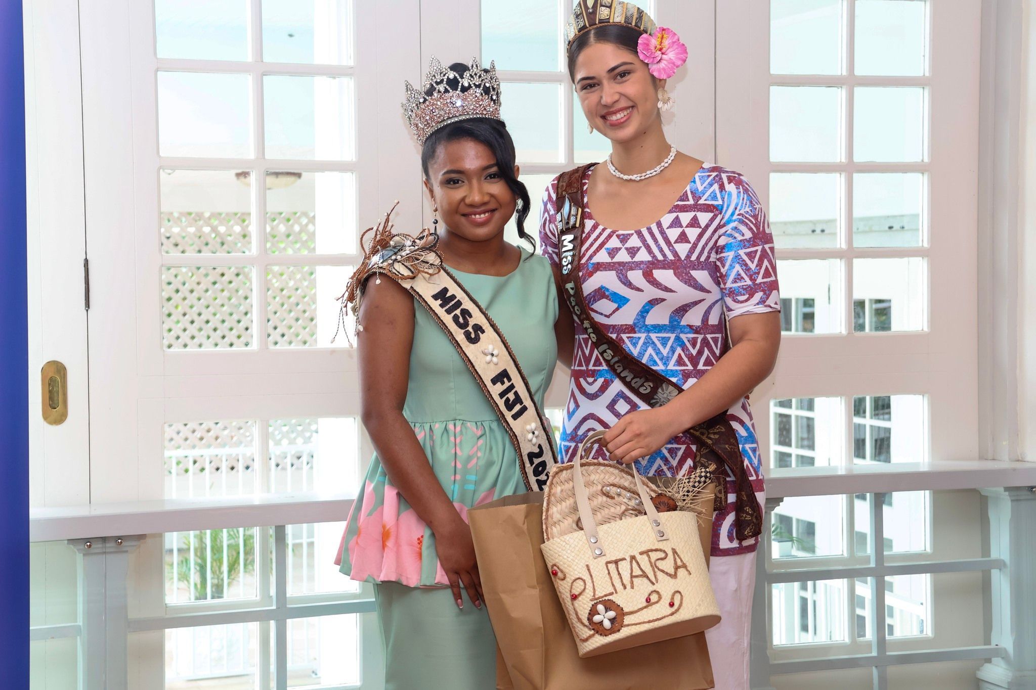 Miss Fiji Dr Peggy Ravusiro, left, and the reigning Miss Pacific Islands Litara Ieremia-Allan from Sāmoa, who was a guest at last month's Miss Fiji Pageant in Suva. Photo/Miss Fiji Pageant