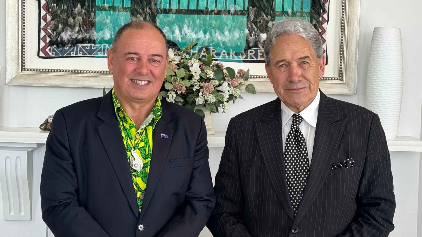 Mark Brown and Vaovasamanaia Winston Peters following their informal meeting in Auckland. Photo/Supplied