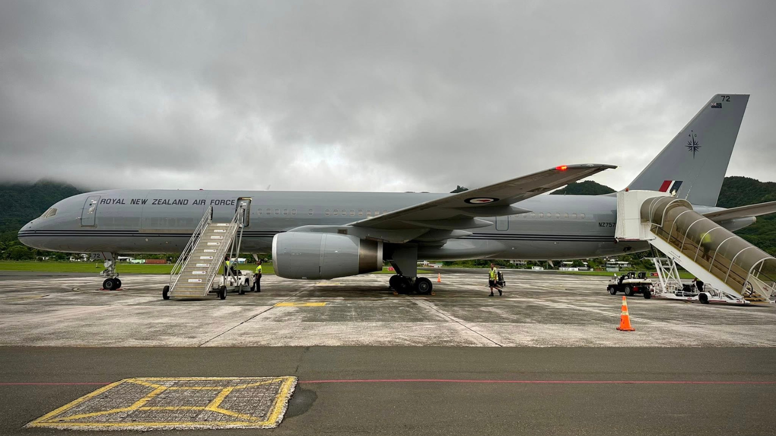 The Royal New Zealand Air Force plane that transported Foreign Minister Peters and officials to the Cook Islands last week. Fuel costs have risen sharply in the island nation, with Teariki Heather saying prices could reach $7 a litre. Photo/Radio Cook Islands