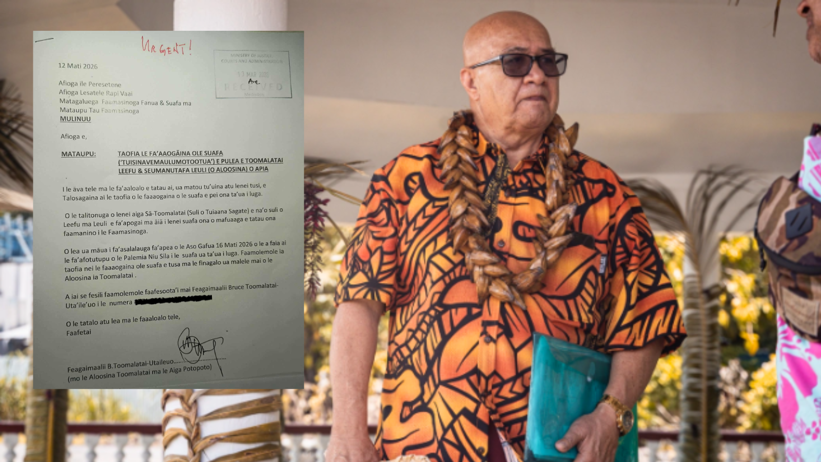 Feagaimaalii's letter was shared widely on social media. He confirmed to local media that the letter was filed with the Courts. Photo/Sāmoa Observer/Facebook/Composite by Renate Rivers
