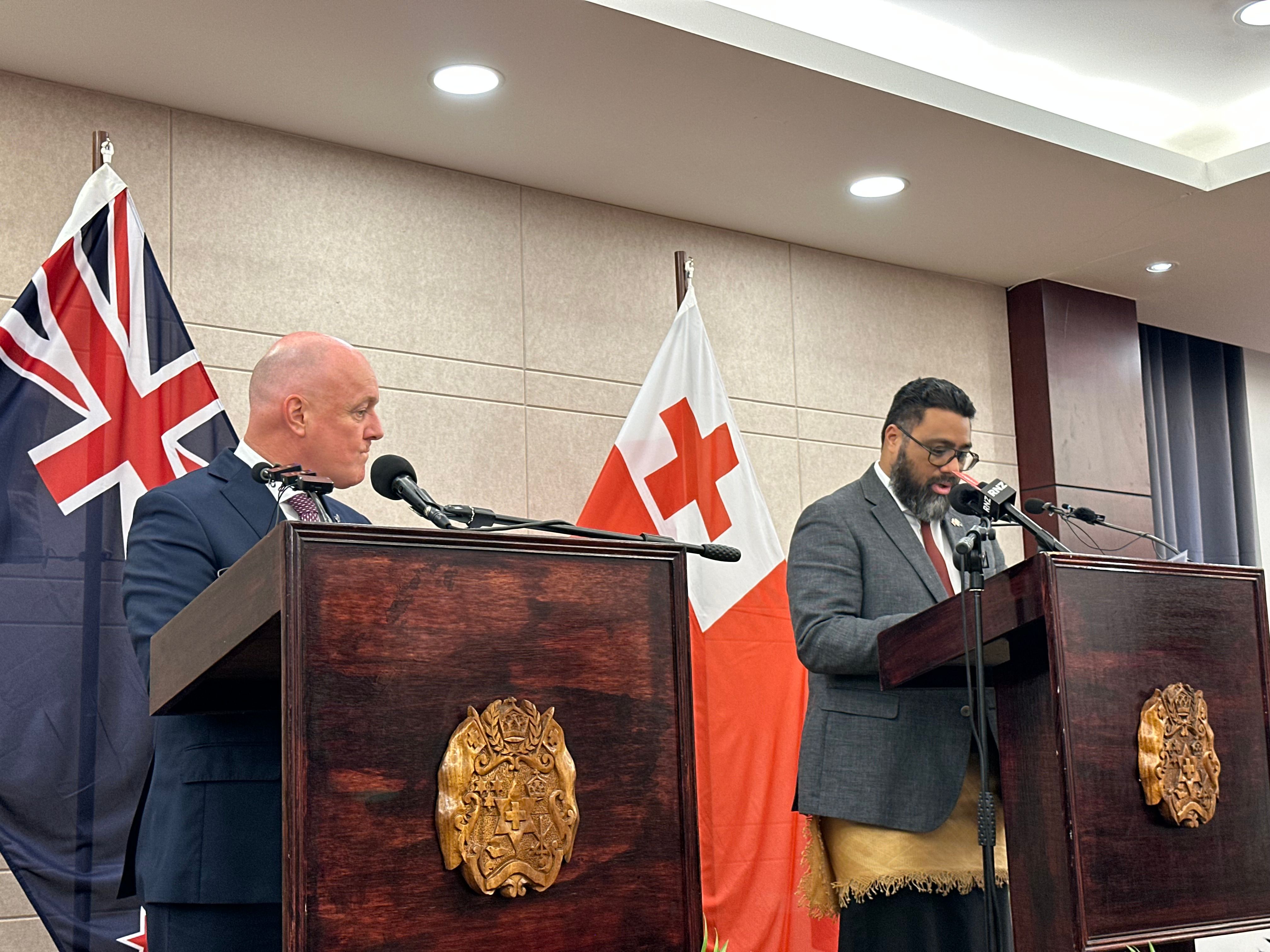 Christopher Luxon and Lord Fakafuna deliver their remarks in Nuku'alofa. Photo/Ala Vailala.