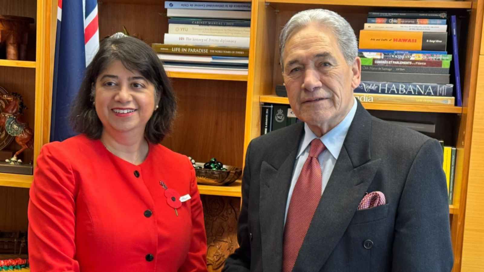 Seema Malhotra met with NZ Foreign Affairs Minister Vaovasamanaia Winston Peters in Wellington. Photo/Supplied