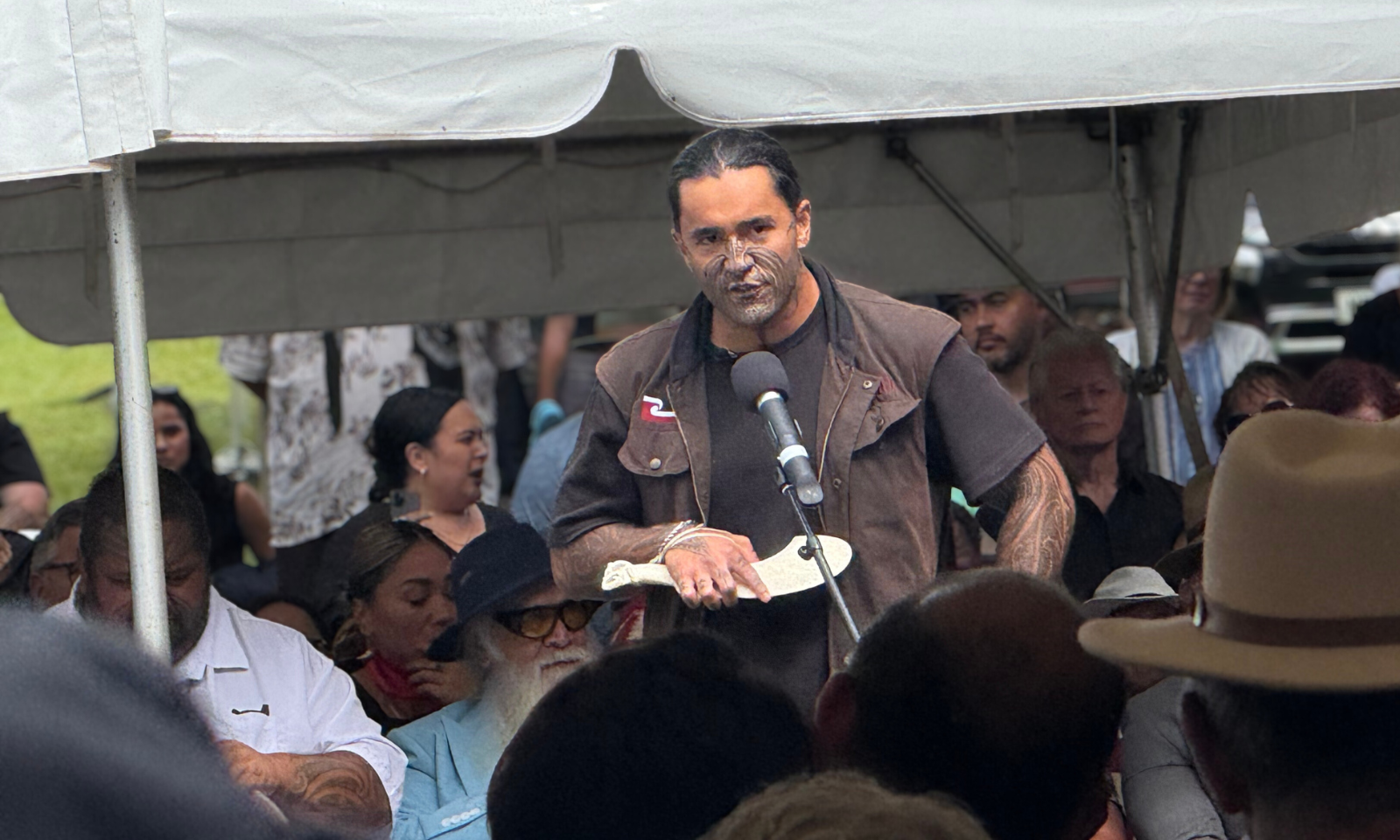 Challenges were exchanged between the haukāinga and politicians, while protesters were prevented from entering the marae ātea.