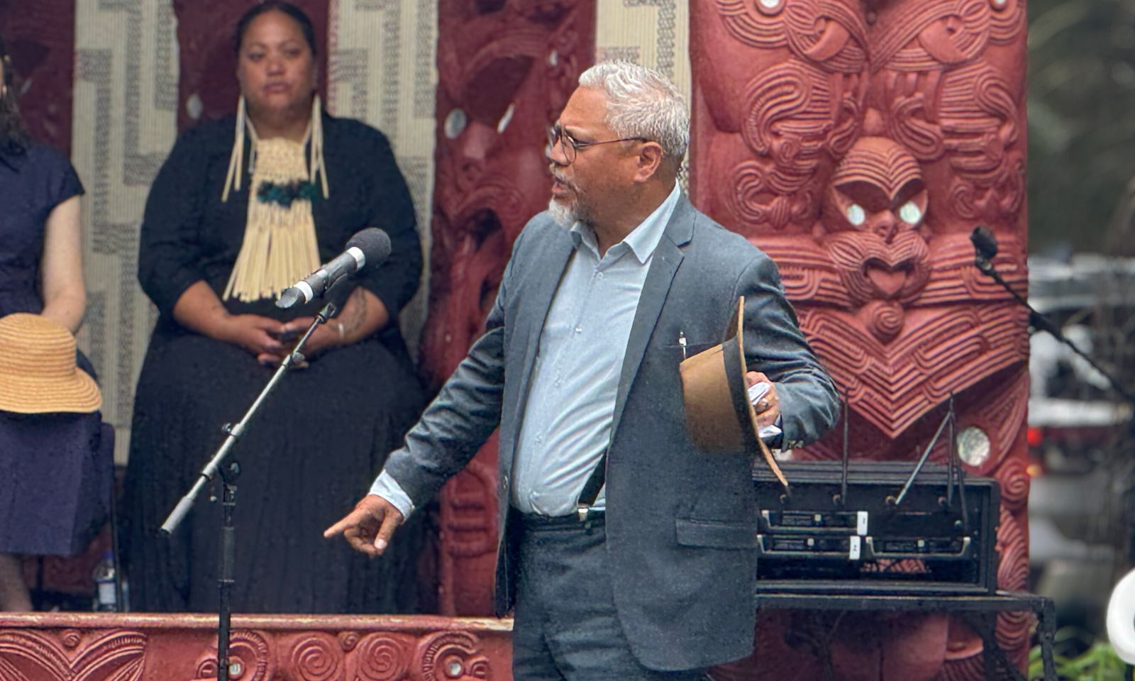 NZ First MP Shane Jones and the party took their leave before pōhiri protocol had formally ended. Photo/PMN News