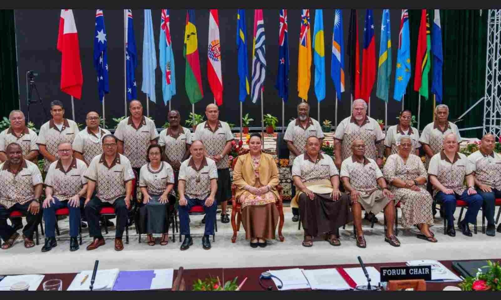 Australian Prime Minister Anthony Albanese, front second from left, with other Pacific Islands Forum leaders and Tongan Royal Princess Angelika Lātūfuipeka Halaevalu Mataʻaho Napua-o-kalani Tukuʻaho following the forum leaders' summit in Nuku'alofa in August 2024. Photo/PMN Digital/Joseph Safiti