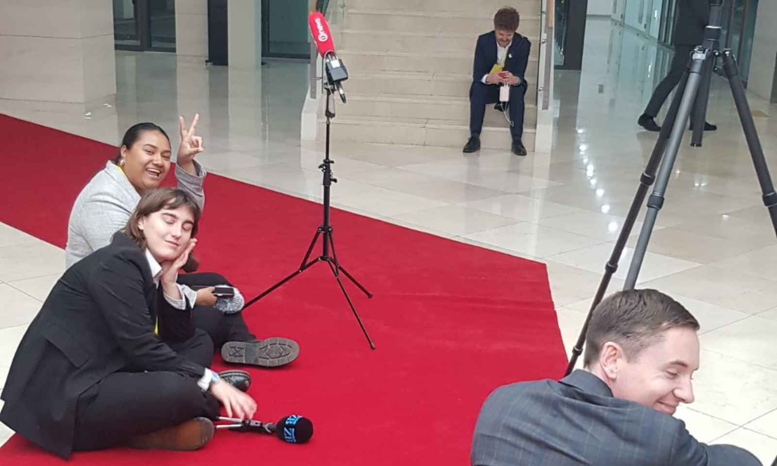 This photo was taken as we're waiting over an hour for Luxon to arrive for our daily media standup. This was about 10pm, we're all tired but the work doesn't stop there as it's filing time as soon as we head back to the hotel.