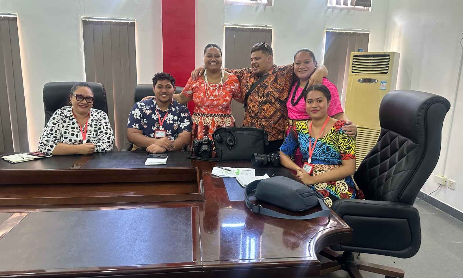 Early morning press-conference with the Prime Minister of Tonga and NZ Foreign Affairs Minister. The media got to wait in a very flash room with very comfortabl chairs while the bilateral was taking place. It's always a joy to meet fellow colleagues who are based in the region. Here are some journalists from ABC Pacific and Matangi Tonga.
