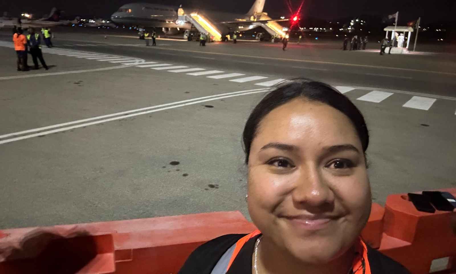 Smiles off the plane, the media were told to stand almost 100 metres from where the show was happening. My camera was not taking it well with how dark it was so I took a selfie and did the best I could with the light exposure.