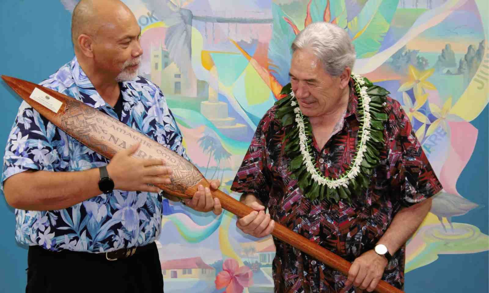 Winston Peters receives a gift from Nauru's Foreign Minister Lionel Aingimea during last week's visit to the Pacific island nation. Photo/Nauru government