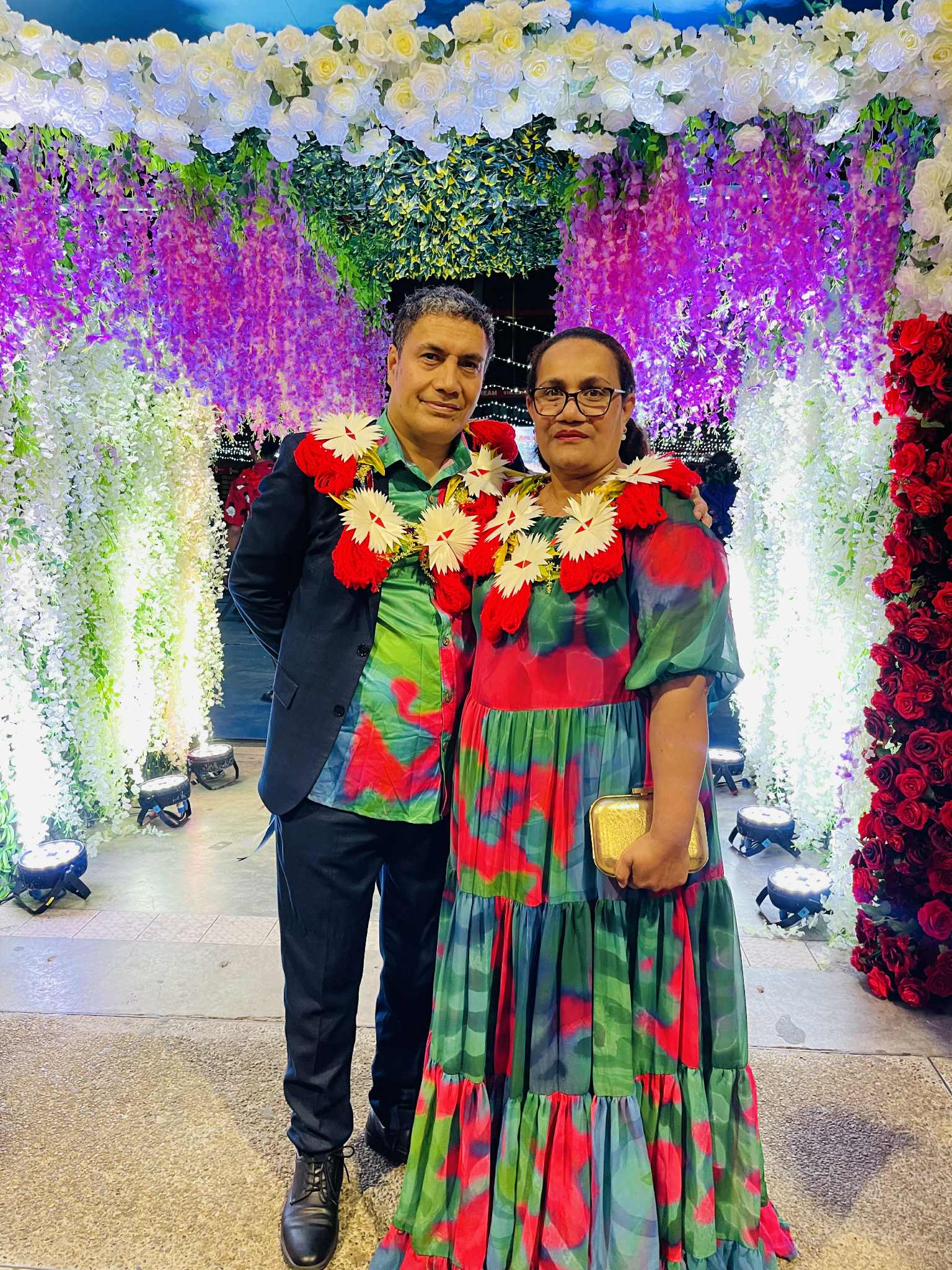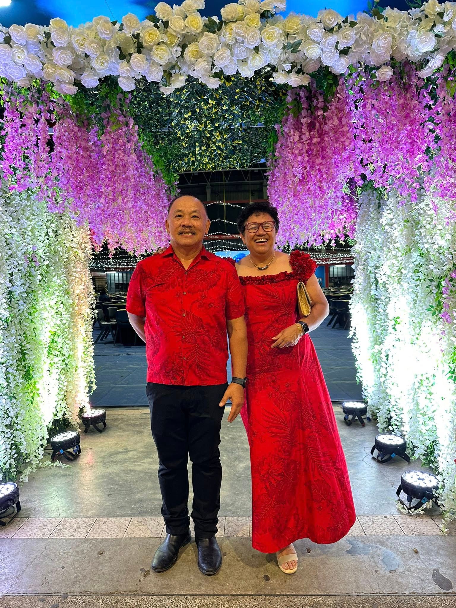 Sylvia Joe, a descendant of Mou, and husband Michael at the gala/island night event on Saturday. Photo/Facebook/Sylvia Joe