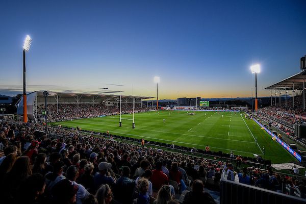 A strong Christchurch crowd witnesses the end of an era as the Crusaders seal their 100th win at Apollo Projects Stadium. Photo/Photosport/John Davidson