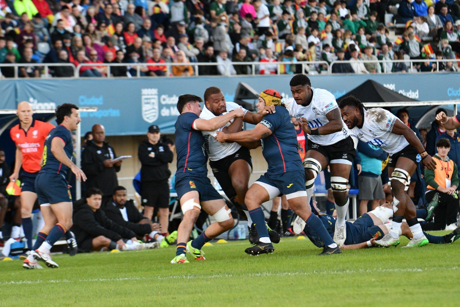But in the final moments, Fiji’s defence held firm as Spain tried to muscle over the line for a historic victory.