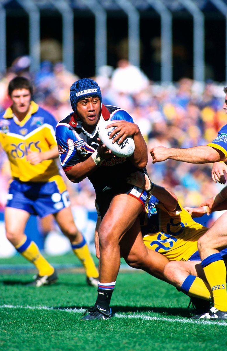 Ali Laiti'iti defends the ball for the New Zealand Warriors against the Parramatta Eels in 2001. Photo/Photosport