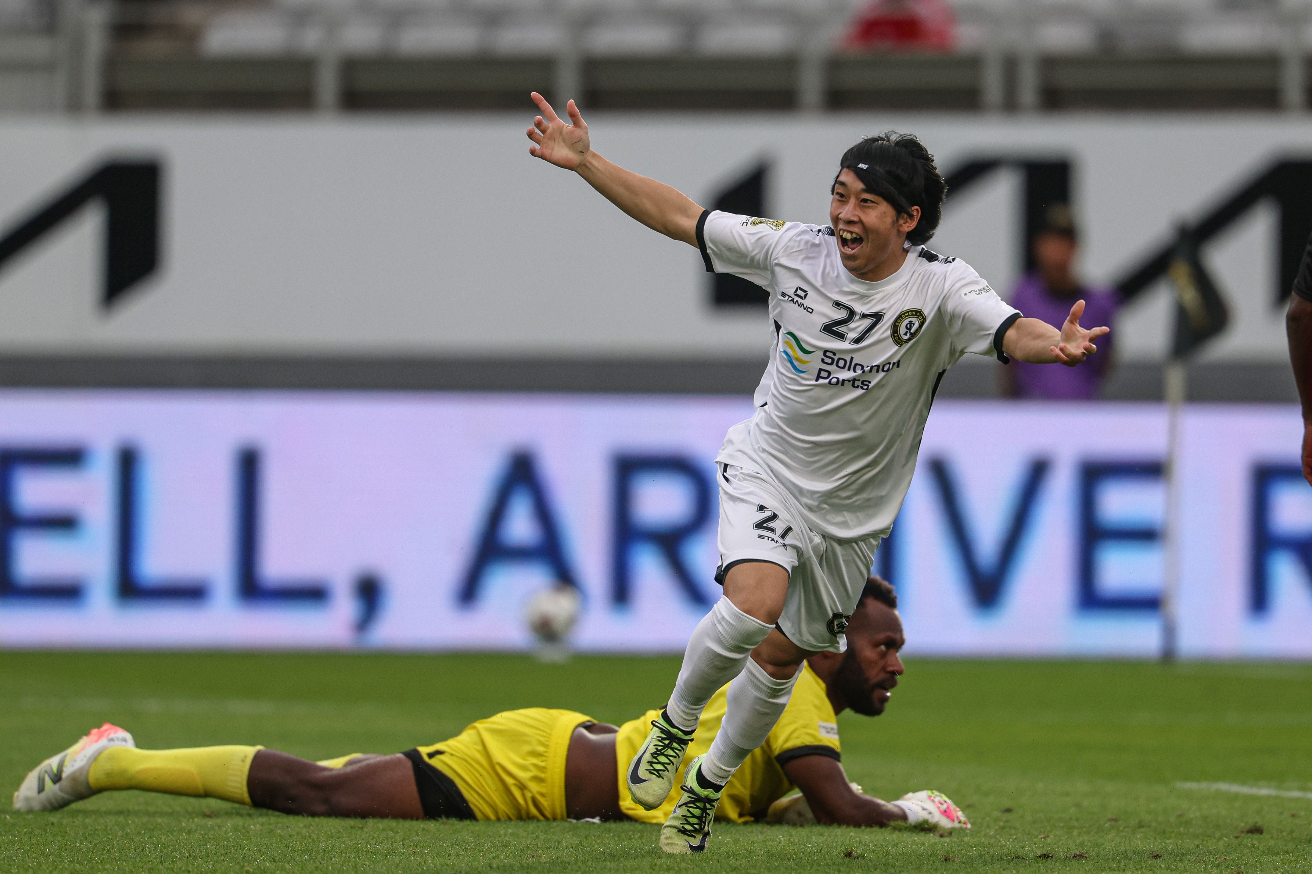 Sota Higashide of the Solomon Kings celebrating after scoring the winning goal against PNG Hekari FC. Photo/OFC Media/Phototek