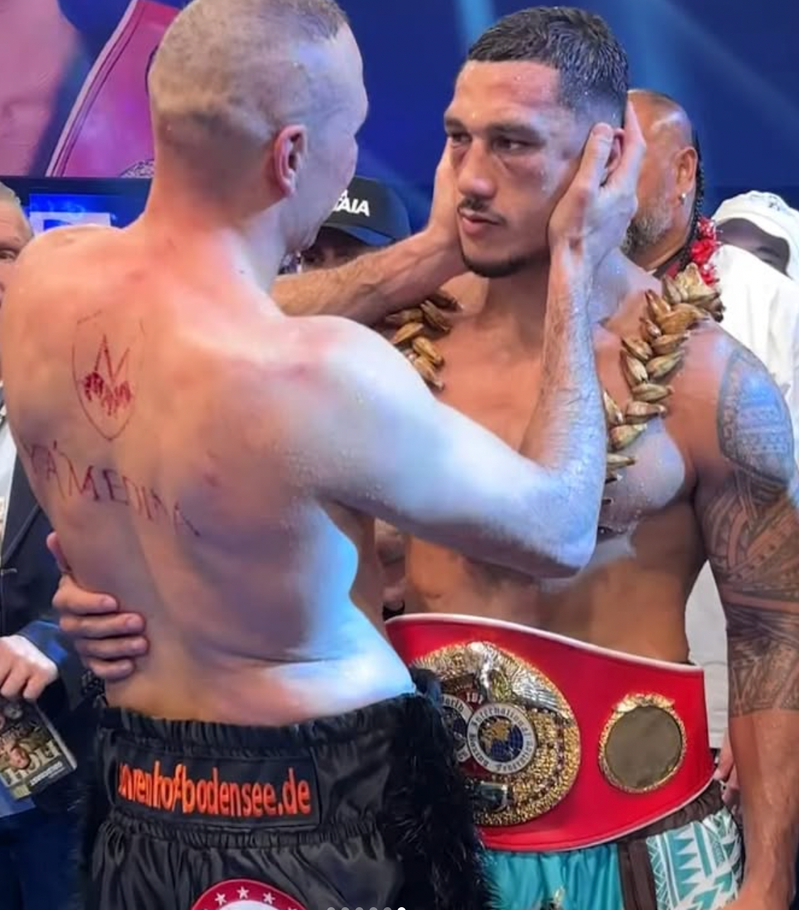 Huseyin Cinkara and Jai Opetaia exchanging words post match. Photo/Instagram