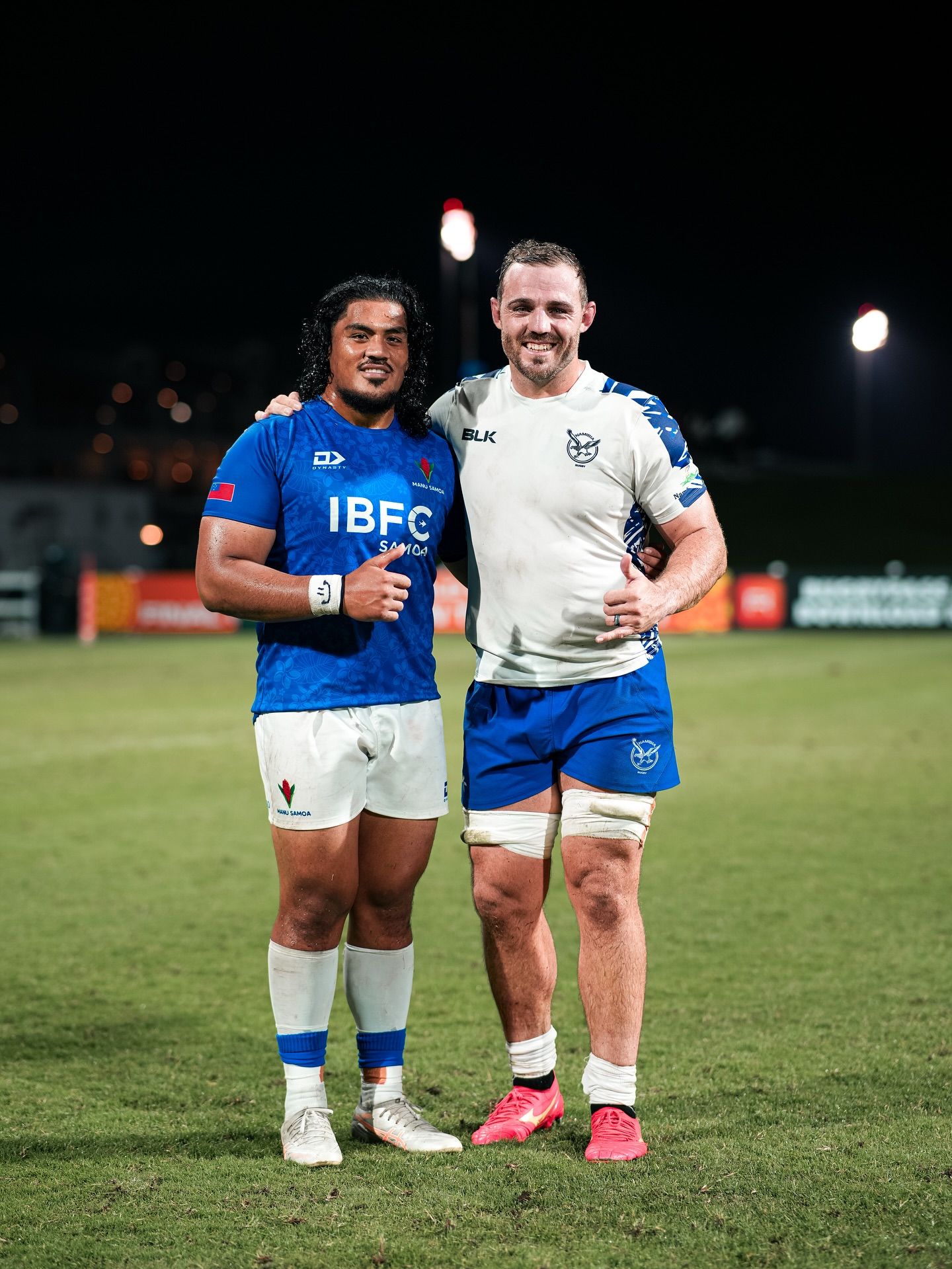 From left: Faletoi Peni and Wian Conradie after the game. Photo/Facebook